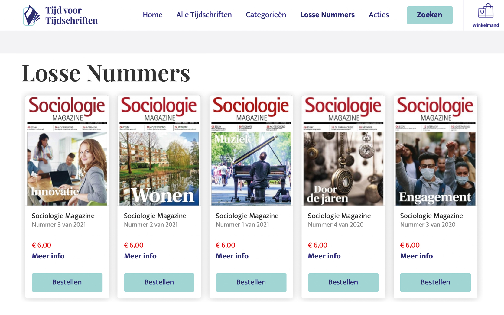 U kunt losse nummers van Sociologie Magazine nabestellen. Deze verkoop verloopt via onze webshop Tijd voor Tijdschriften. U kunt hier gemakkelijk betalen via iDeal.